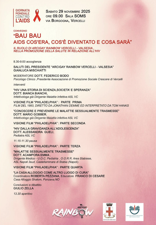 Arcigay Rainbow Vercelli - Valsesia è orgogliosa di annunciare l'organizzazione del convegno "BAU BAU - AIDS COS'ERA, COS'È DIVENTATO E COSA SARÀ”, un evento cruciale per la sensibilizzazione e l'aggiornamento sull'HIV e le Malattie Sessualmente Trasmissibili (MST).