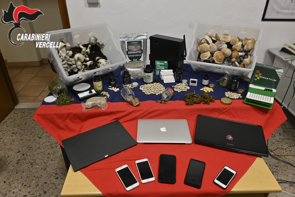 Primo sequesto, sul territorio vercellese, di funghi allucinogeni a base di psilocibina: molecola che, agli effetti di legge, rientra tra le sostanze stupefacenti, per le quali sono vietate la produzione, la cessione e la vendita. I Carabinieri della Sezione Operativa della Compagnia di Vercelli, con la collaborazione delle Stazioni Carabinieri di Vercelli, Cigliano e Borgo Vercelli, hanno dato esecuzione a un’operazione coordinata dalla Procura della Repubblica di Vercelli, traendo in arresto un 63enne, originario di Milano, conosciuto per la pubblicazione di volumi, interventi sul web, podcast e interviste nelle quali promuove effetti terapeutici, del tutto presunti e putativi, di queste sostanze.
