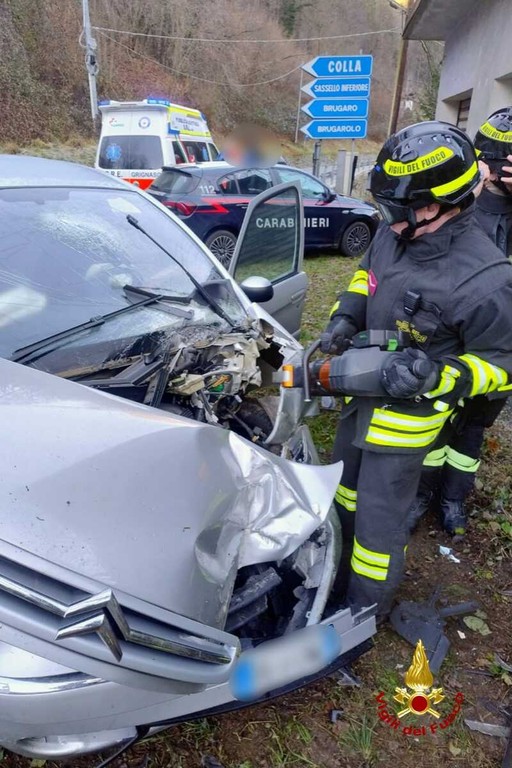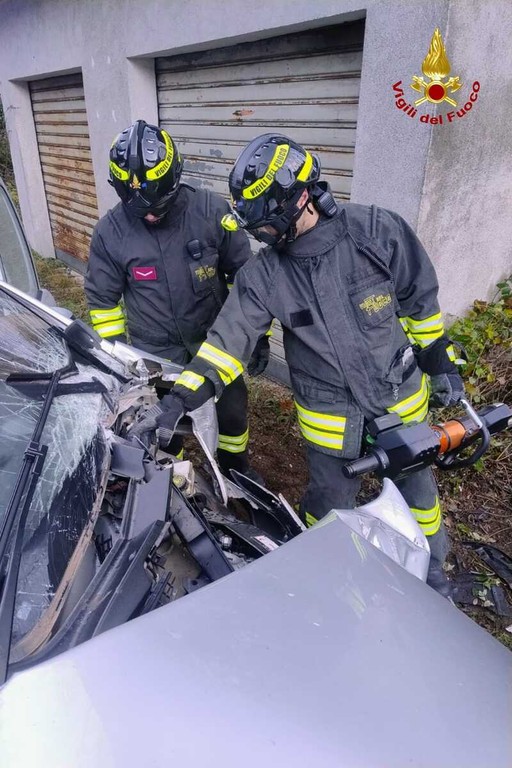 E' stato necessario l'intervento dei Vigili del Fuoco per soccorrere le due persone coinvolte in un incidente avvenuto intorno alle 12 di martedì sulla provinciale 9, in località Bocciolaro, Comune di Cravagliana.