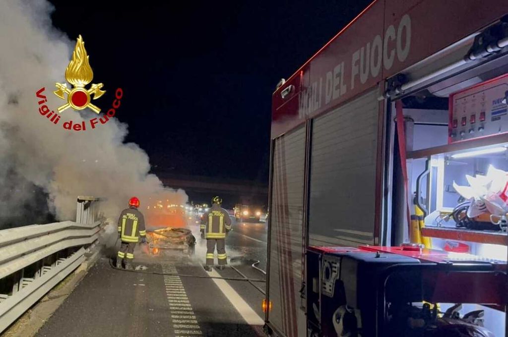 Auto in fiamme, nella prima serata di domenica, intorno alle 19,30, lungo l'autostrada A4 in direzione Milano, poco prima dell' uscita di Balocco.
