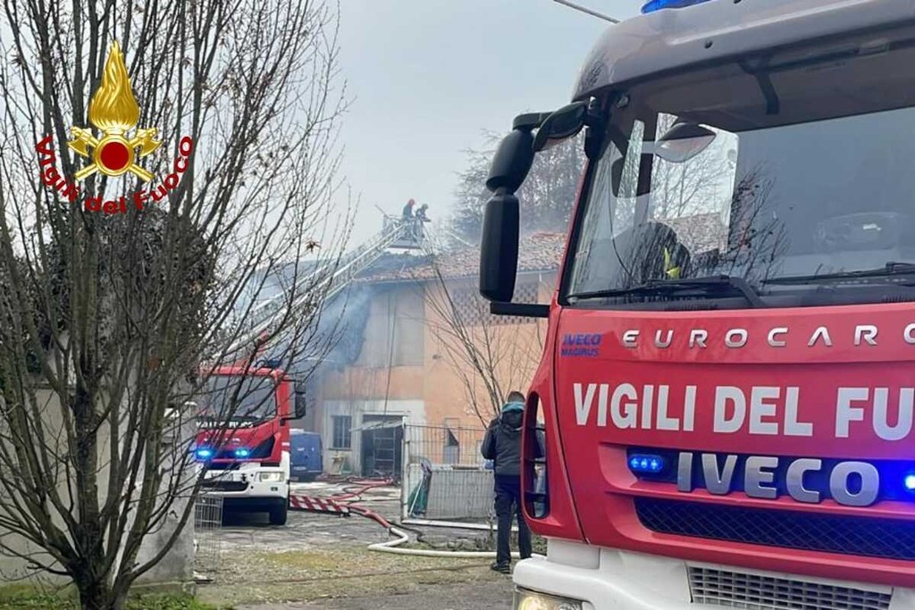 Incendio in una cascina di Palazzolo, intorno alle 12,30 di venerdì 23 gennaio. Le fiamme hanno interessato un locale adibito a deposito all'interno del quale si stavano sviluppando le fiamme che avevano coinvolto una porzione di tetto.
