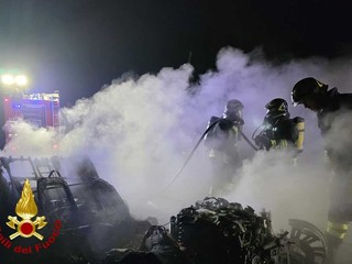 L'incendio di un'autovettura ha impegnato, nella serata di mercoledì, una squadra dei Vigili del Fuoco del distaccamento permanente di Livorno Ferraris e una di quello volontario di Santhià. Intorno alle 21,30, personale e mezzi sono intervenuti lungo sp593 nel CVomune di Alice Castello dove un mezzo, per causa al vaglio dei tecnici, è stato completamente distrutto dalle fiamme.