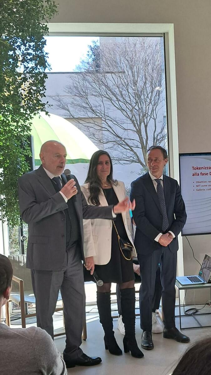 A giusto corollario di un progetto di un’azienda come è la Senini, con radici profonde nella sua storia ma con la vision che guarda al futuro, ha destato profondo interesse l’intervento sulla tokenizzazione delle opere d’arte, di Mariano Giovanni Carozzi, fondatore di First Personal Coin, start up creata per semplificare l’accesso a tecnologie e modelli di business, dove si combinano tecnologia all’avanguardia, competenza economica ed acume legale per supportare le aziende che vogliono entrare nel Web 3.0. Con una carriera significativa nel settore bancario in Banca Sella e successivamente fondatore di Prestiamoci, Carozzi ha ricoperto ruoli di leadership in Tinaba spa, è stato presidente di Young e ha partecipato attivamente al dibattito sul fintech in Italia e fra i primi ad interessarsi a Bitcoin e DLT (Distributed Ledger Technology, ossia la tecnologia che si pone alla base del funzionamento dei crypto – assets, un database centralizzato in cui tutti i computer di una rete possiedono la medesima copia del database). Molto affascinato dall’ingresso nell’arte di Senini, l’ha presa a modello di case study, presentando al pubblico quelle che sono le peculiarità della tokenizzazione delle opere d’arte, ossia un valore aggiunto significativo perché trasforma l'opera in un asset digitale liquido e accessibile, pur mantenendo l'integrità del bene fisico.