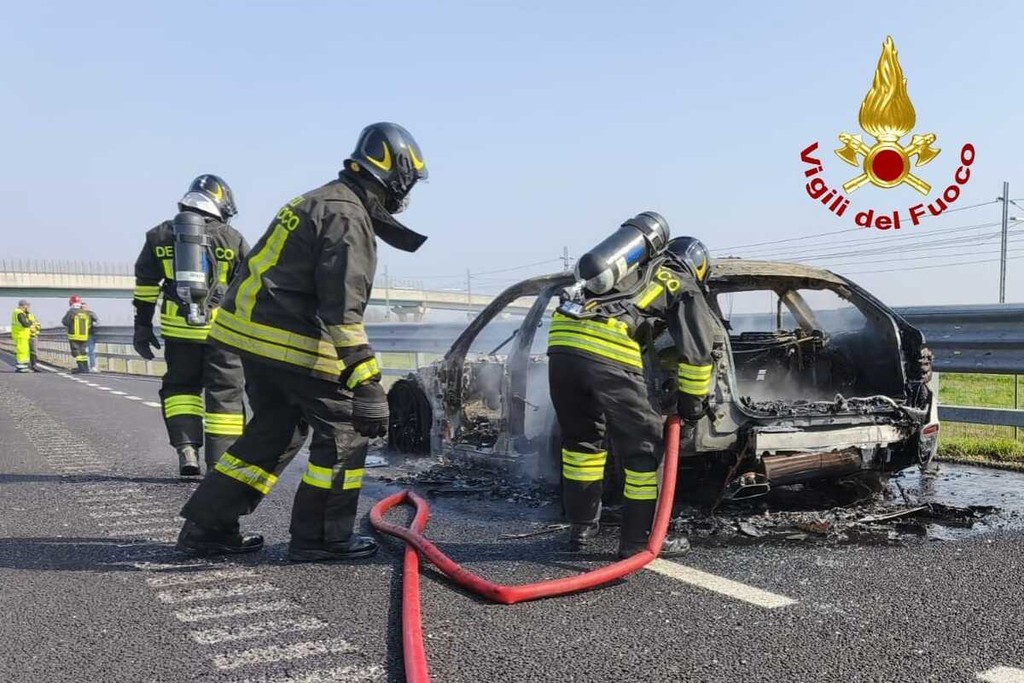 Auto in fiamme, intorno alle ore 12,15 di domenica 8 marzo, lungo il tratto vercellese della A4 Torino - Milano. La squadra dei vigili del fuoco del distaccamento di Livorno Ferraris e quella volontaria di Santhià sono intervenute nei pressi di Carisio, per un incendio autovettura. All'arrivo delle squadre dei vigili del fuoco il veicolo era completamente avvolto dalle fiamme e l'intervento è valso alla completa estinzione e alla messa in sicurezza della zona interessata.