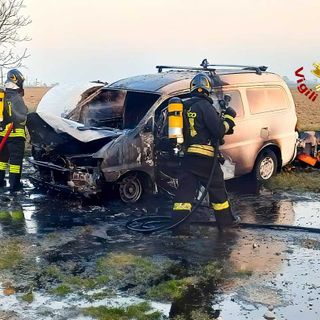 Furgone divorato dalle fiamme