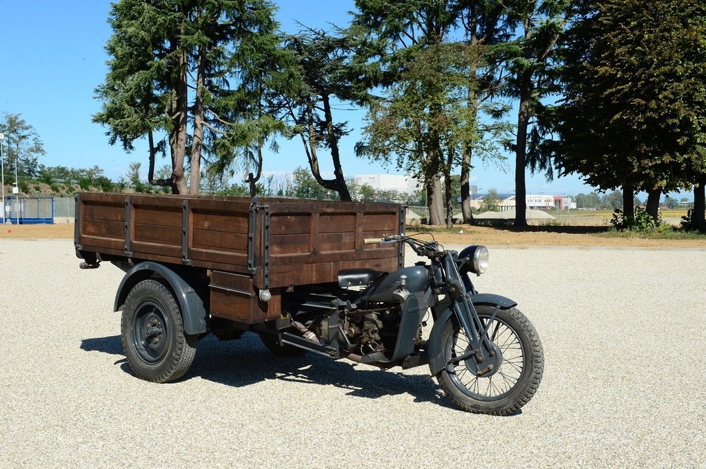 Accanto al 666 N7 trovano posto un altro veicolo Fiat, un camioncino 1100 ELR del 1950, derivato commerciale della popolare berlina 1100 E, e un motocarro Guzzi Ercole dello stesso periodo. Quest’ultimo veicolo riveste una particolare importanza per la Fondazione e per il Gruppo Marazzato, in quanto è proprio su uno di questi instancabili tre ruote da una tonnellata e mezza di portata utile che Lucillo Marazzato, fondatore dell’azienda oggi guidata dai nipoti Alberto, Luca e Davide, iniziò oltre 70 anni fa la sua prima attività di trasporto.