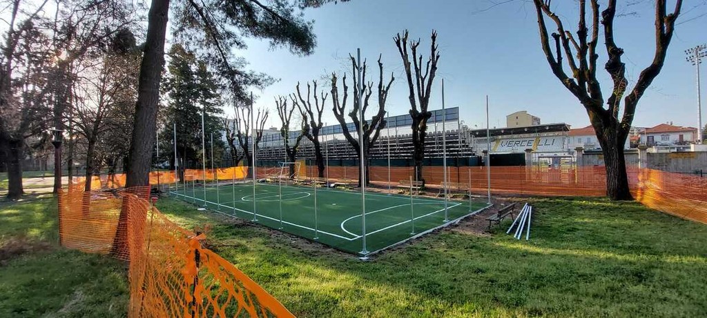 I lavori sono iniziati mercoledì 11 febbraio con la trasformazione dell’ex campo da bocce nel nuovo campo da calcetto (non regolamentare). Nei giorni scorsi è stata completata la posa del prato da gioco e sono in corso le installazione delle recinzioni. L’investimento è stato di circa 53.000 euro. Il cantiere si concluderà nei primi giorni di aprile, dopo che saranno effettuate le ultime sistemazioni. «La trasformazione dell’ex campo da bocce in un nuovo spazio dedicato al calcetto rappresenta un segnale importante di come intendiamo valorizzare le aree verdi urbane: rendendole, cioè, più funzionali e rivolte ai giovani» sottolinea Prencipe.