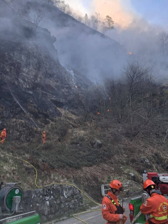 Terzo giorno di battaglia contro il fuoco, in Val Mastallone. Anche giovedì sono proseguite senza sosta dalla notte le operazioni di spegnimento e presidio da parte dei Vigili del Fuoco nel Comune di Cravagliana, località Valbella e Ferrera.