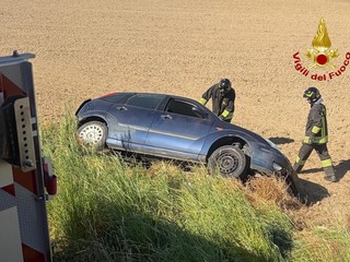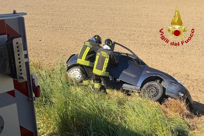 Scontro, poco prima delle 16 di sabato 25 aprile, sulla SP31 nei pressi del cimitero di Stroppiana. Dopo l'urto con un altro mezzo, una vettura è finita fuori strada, ribaltandosi in un fosso adiacente la carreggiata e intrappolando all'interno una persona, ferita.