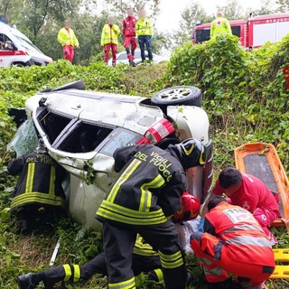 Fuori strada con l'auto: ferito resta bloccato tra le lamiere